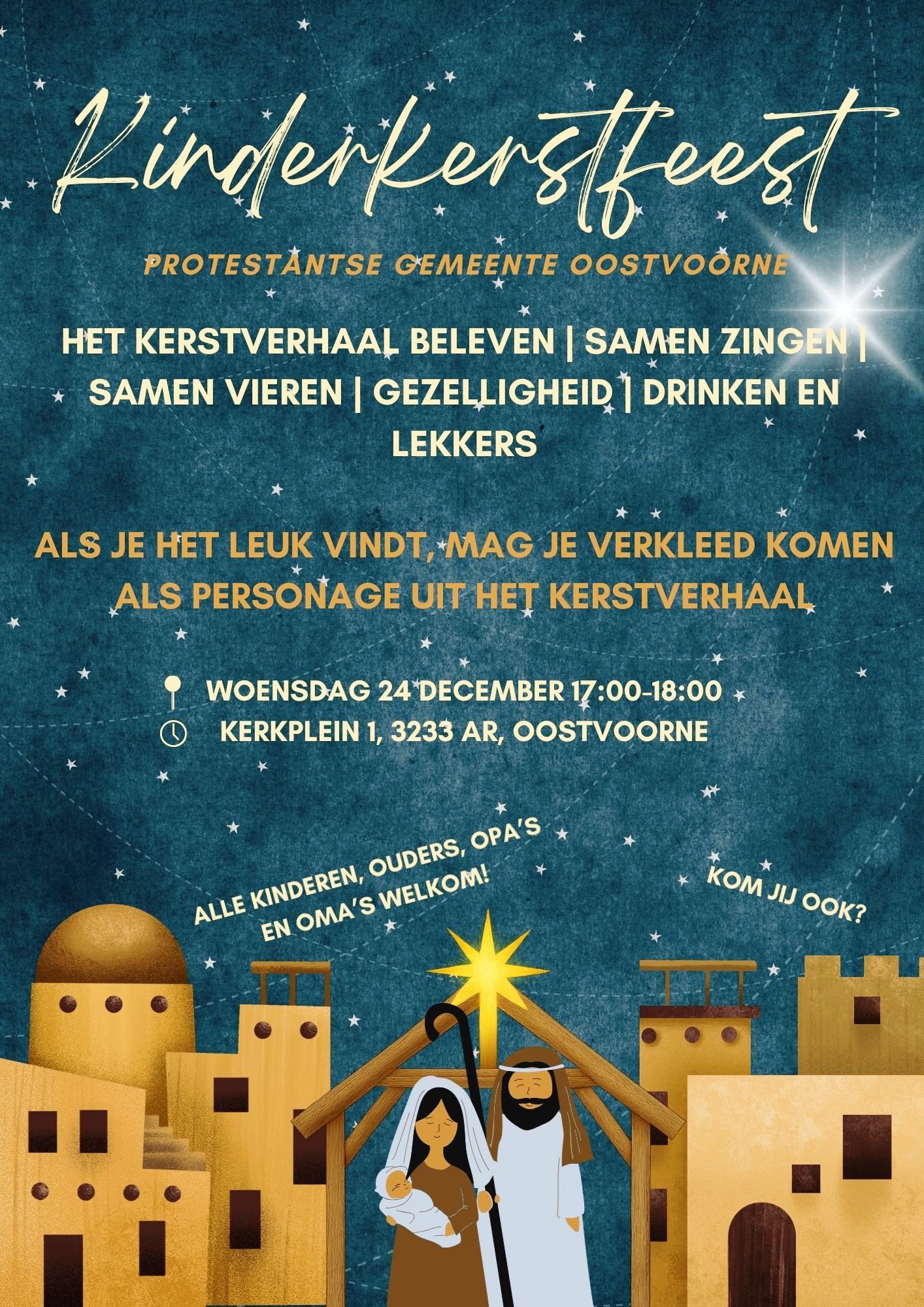 Op 24 december van 17:00 tot 18:00 uur ben je van harte welkom in de Dorpskerk van Oostvoorne voor een feestelijke Kinderkerstviering.