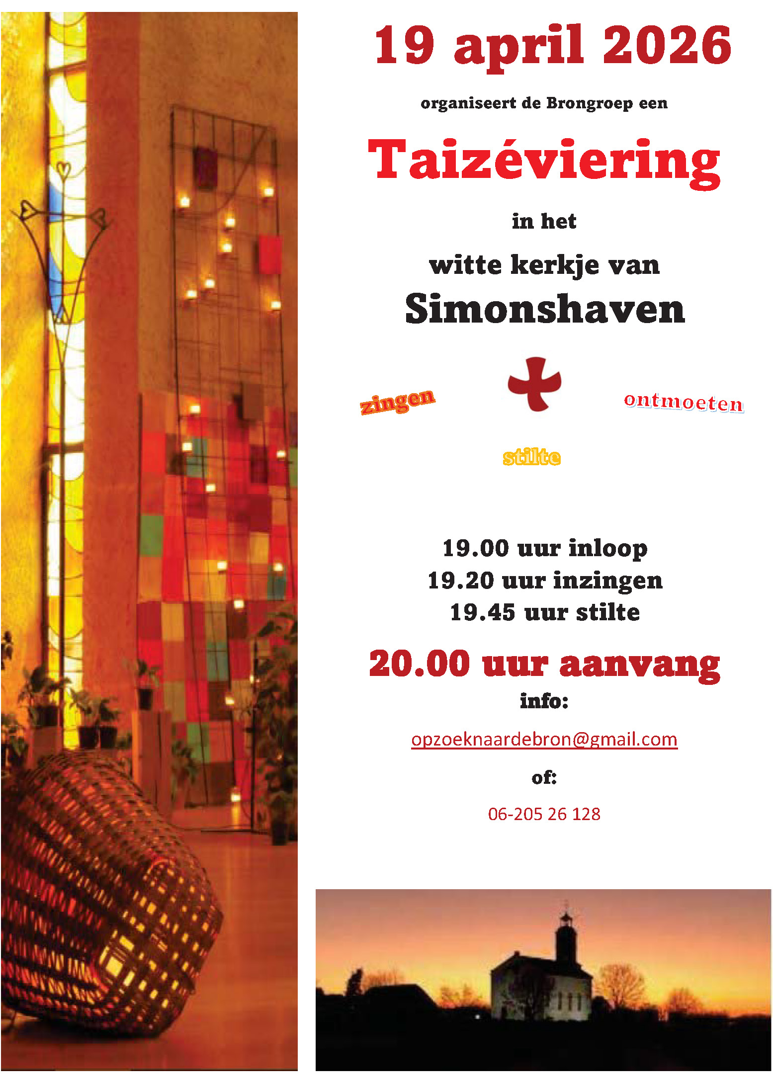 De Brongroep organiseert weer een Taizéviering in het witte kerkje van Simonshaven.