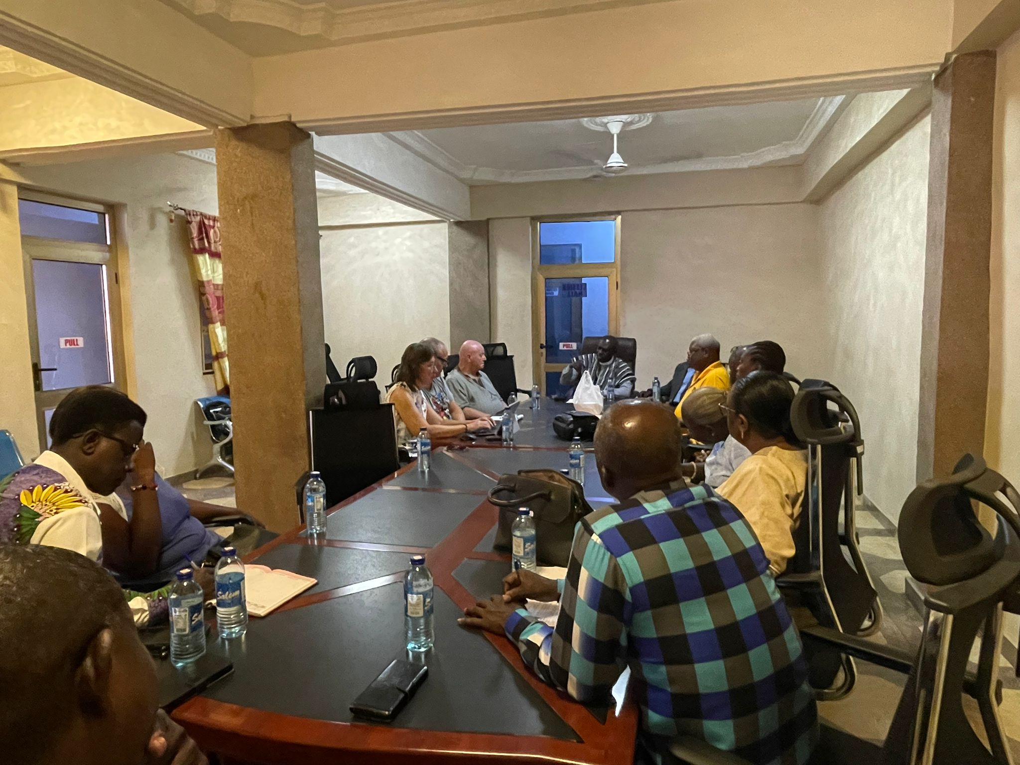Dat is Old Tafo. En daar staat, op een keurig onderhouden terrein, het oudste project van de familie Varekamp, de ‘Old Tafo school’, waar tweeduizend kinderen les krijgen, een schoolmaaltijd eten, boeken uit de bibliotheek lezen en als ze ziek zijn naar de verpleegkundige in de kliniek kunnen. Vandaag hadden we een overleg met de leiding, in de stafruimte van de school.